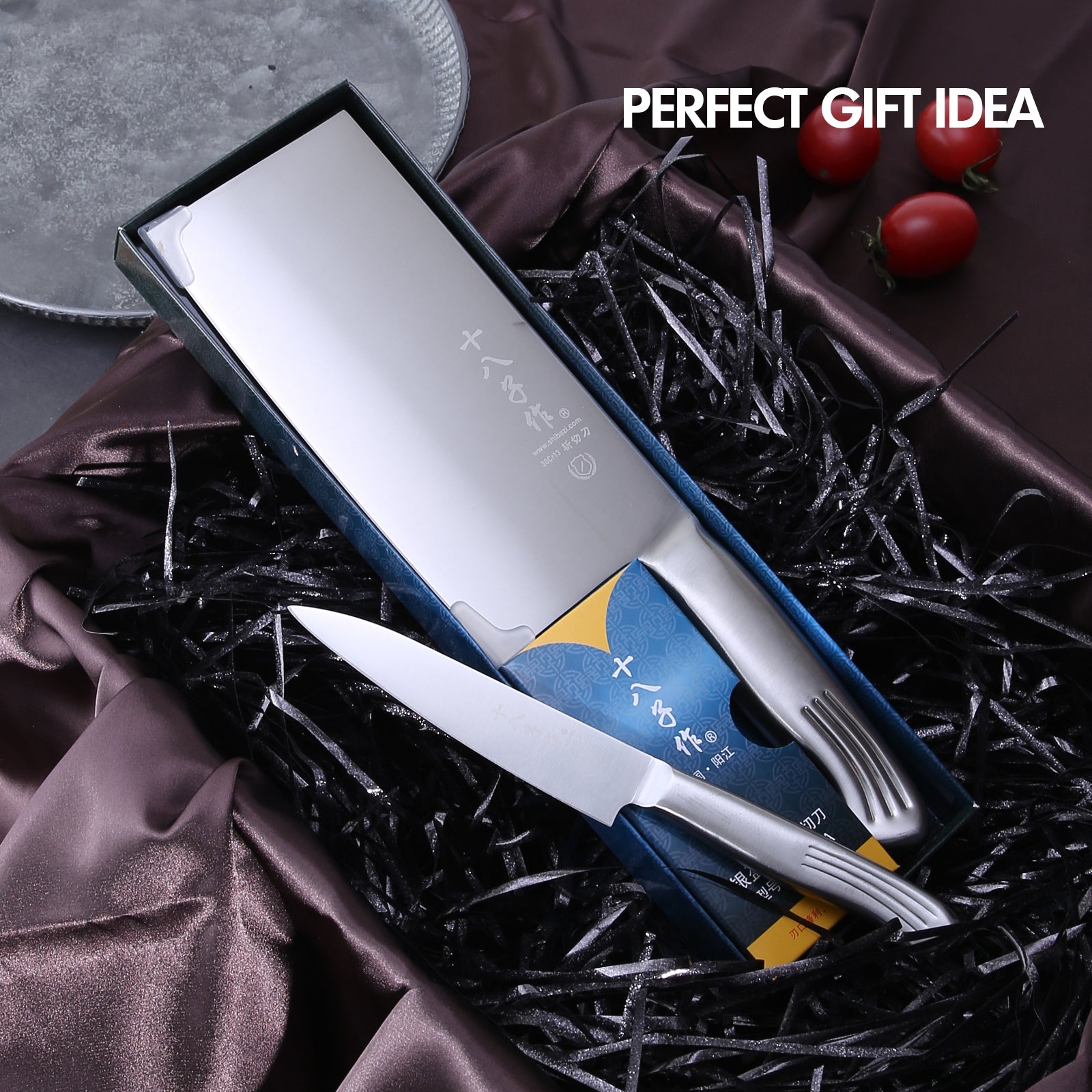 SHI BA ZI ZUO 2 Pcs Knives Set for Kitchen,Cleaver Knife and Fruit Knife,Professional Knife Set with Stainless Steel Handle for Meat and Vegetable Cutting