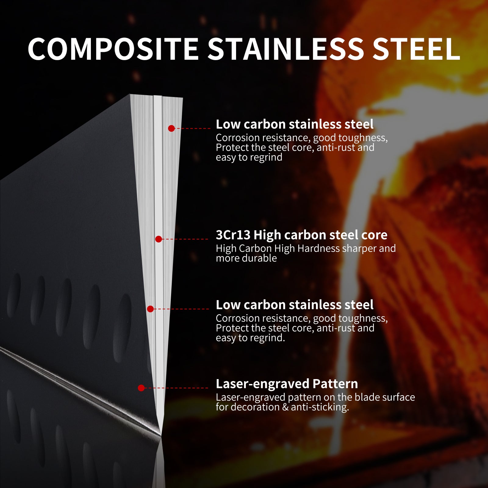 - 【Ergonomic Design Handle】Anti-corrossion Steel Handle with hollow inside for better use in daily cooking.The ergonomically designed handle provides a more comfortable holding, assisting you in easily completing cooking tasks.Much effortless and durable.