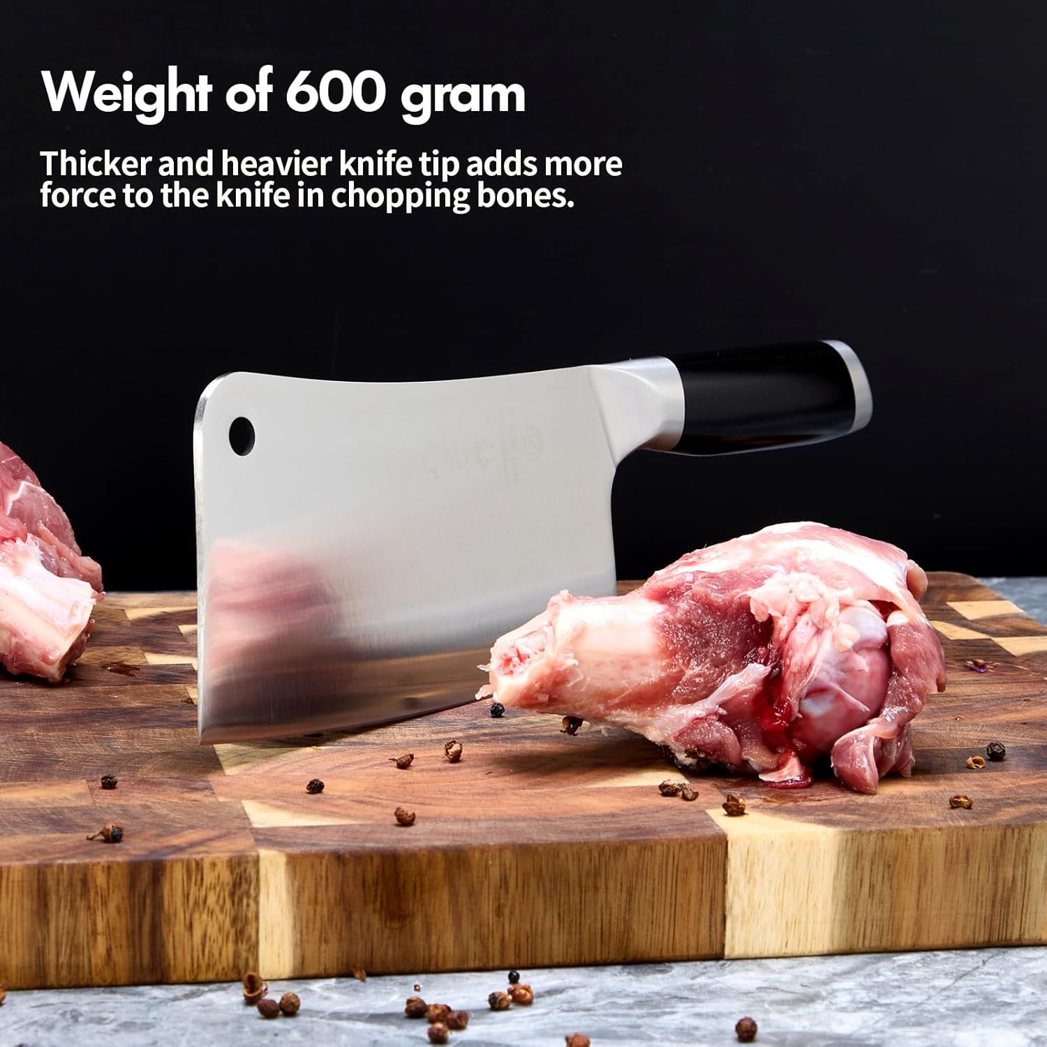 - Professional Knife Set - This kitchen knife set includes 2 razor-sharp knives: a bone chopper and a chef knife.Whether you're slicing meat,vegetables,dicing herbs,or prepping fruits, each kitchen knife of this set is designed to handle a variety of tasks effortlessly. Perfect for both professional chefs and home cooking enthusiasts.