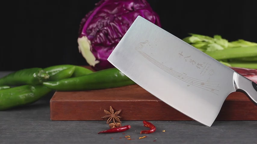 - Ultra sharp blade edge - unique wet sharpening craftsmanship prevents the edge metallographic structure from phase change and keeps the edge sharp for quiet a long time and is easy to be sharpened. The former part of the blade is for slicing, the latter part is for chopping
