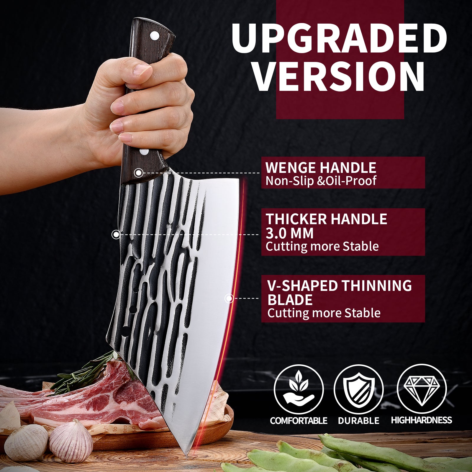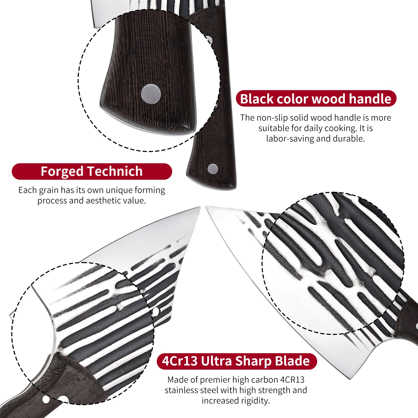 SHI BA ZI ZUO Butcher Knife Forged Cleaver Knife Ultra Sharp Kitchen Knife Chef Knife for Meat Cutting with Wooden Handle