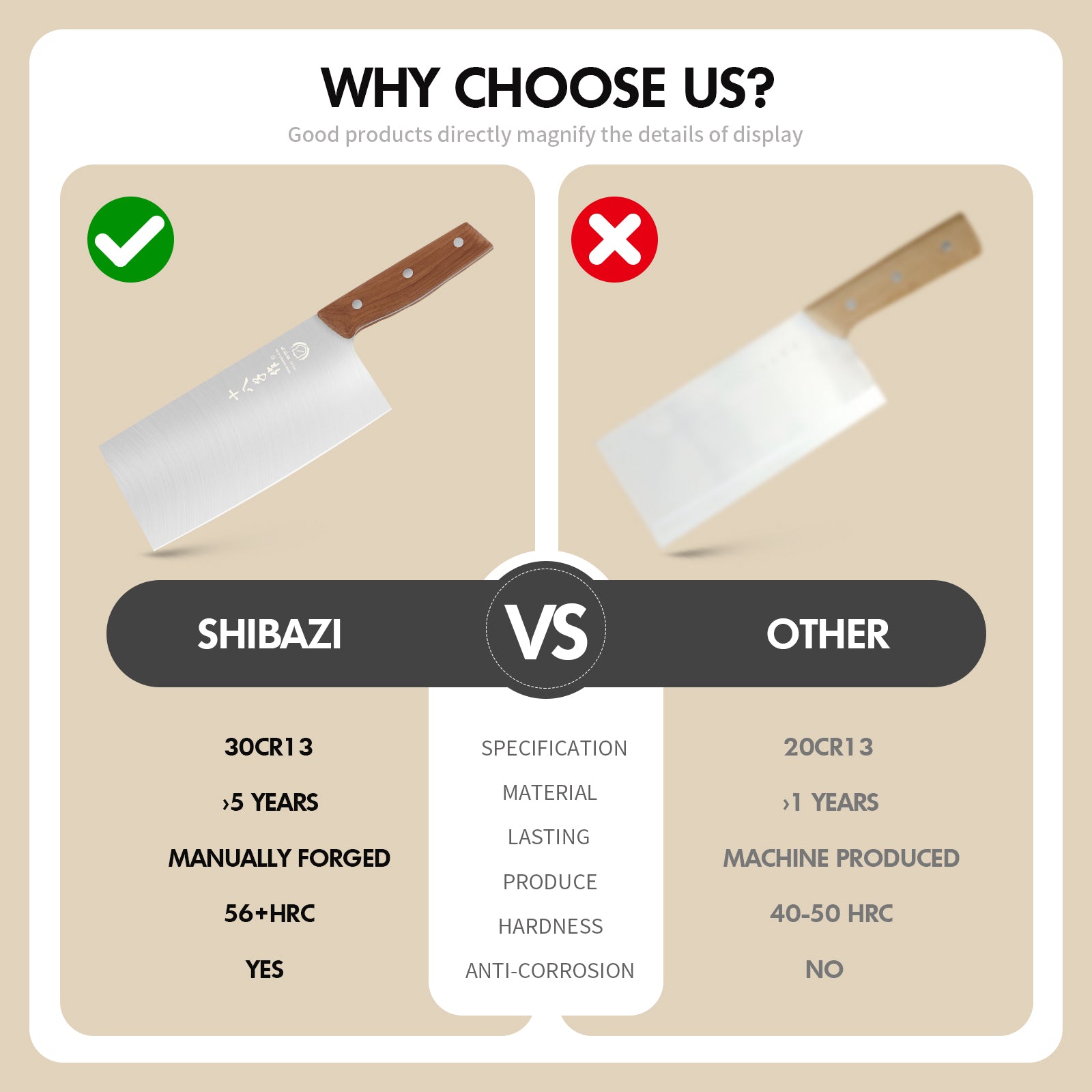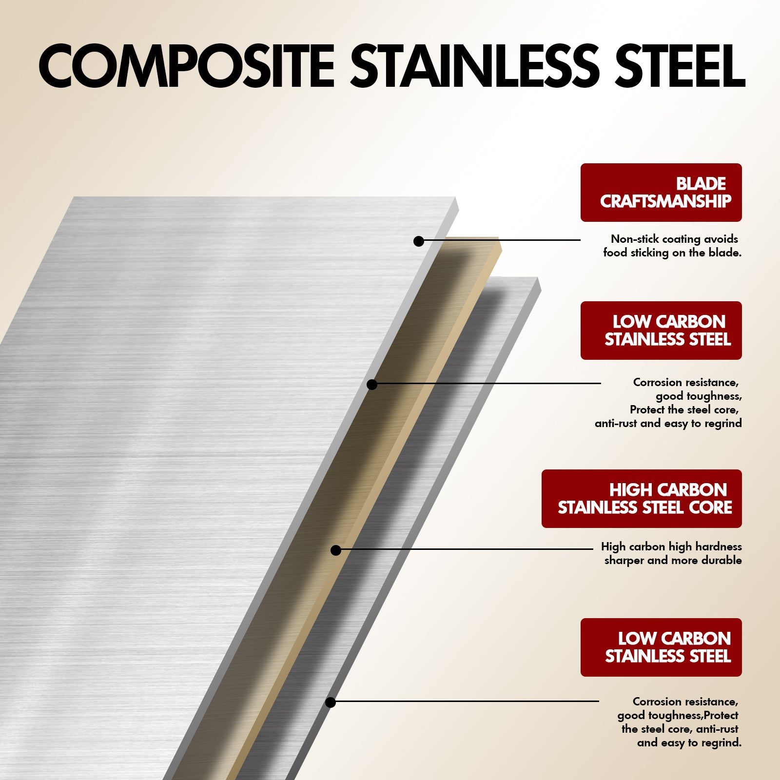 - 【Premium Stainless steel】3 layer high quality clad 30Cr13 stainless steel of high carbon core steel performs excellent hardness, durability and sharpness maintaining. Outside layers of low carbon steel does well in toughness, corrosion resistance and plasticity. The combination of two steels makes this Knife perfectly work.