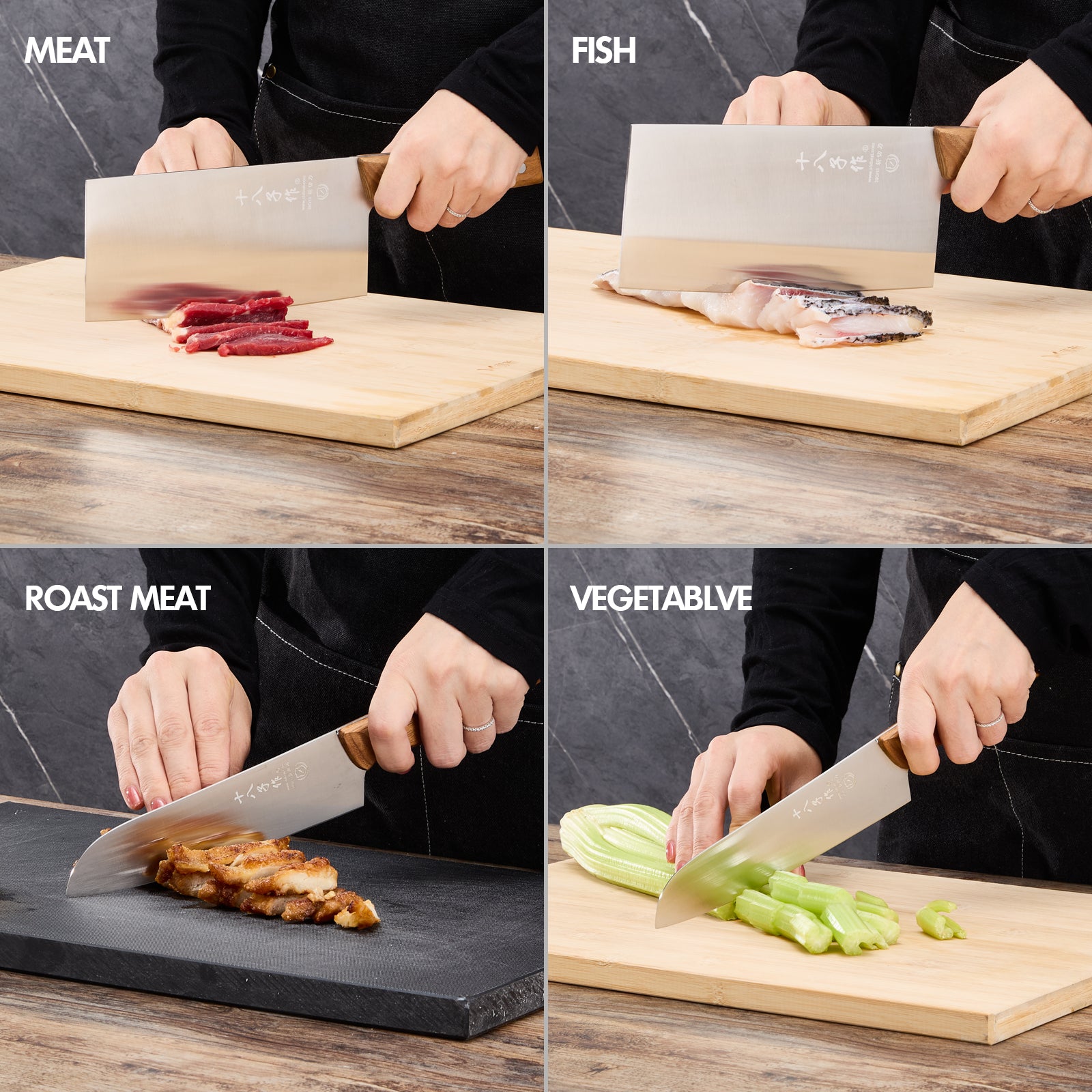 - 【Blade Craftsmanship】Vacuum heat treatment endows the steel with best mechanical property. Non-stick coating avoids food sticking on the blade. Wire-drawing integrated full tang blade is more stable and safer.