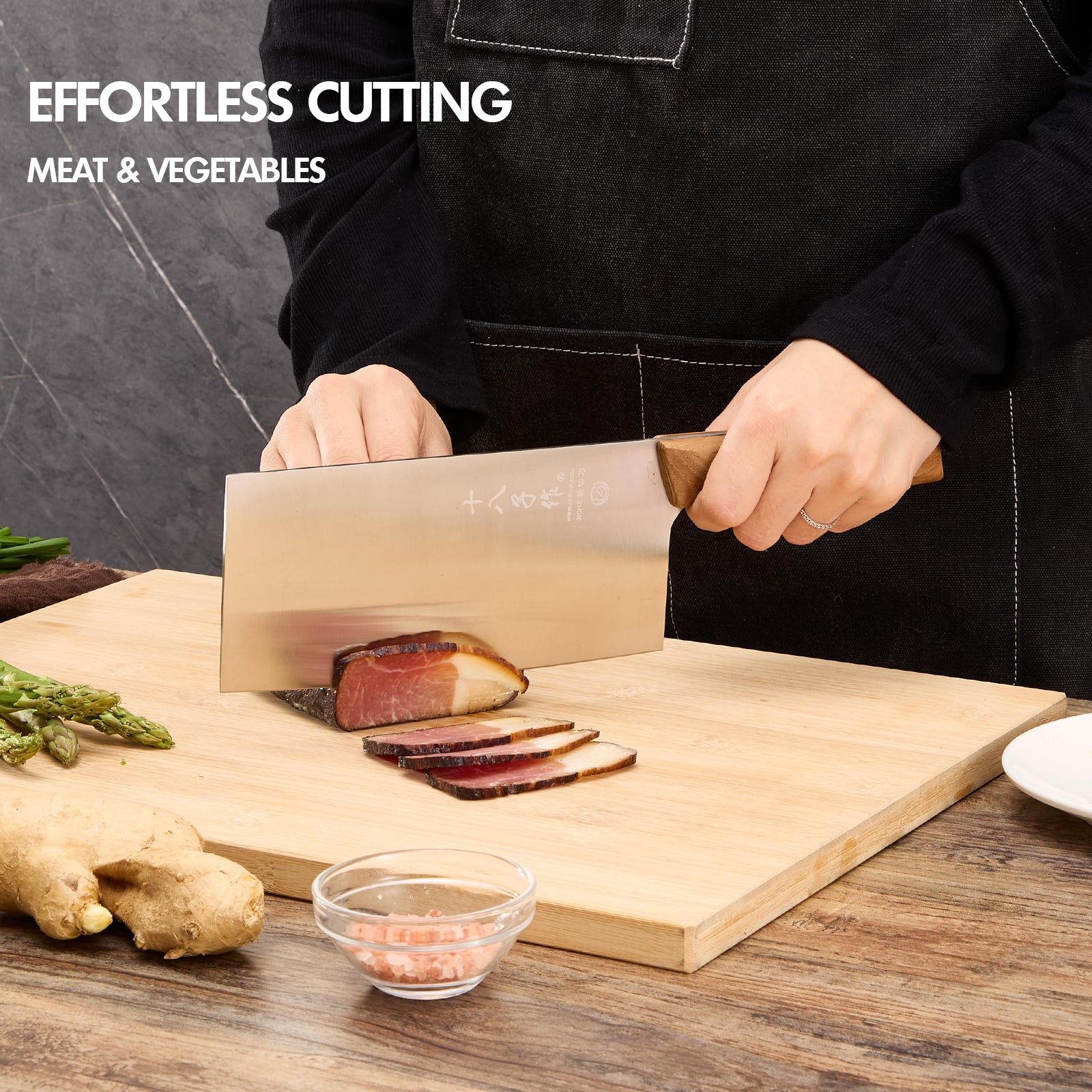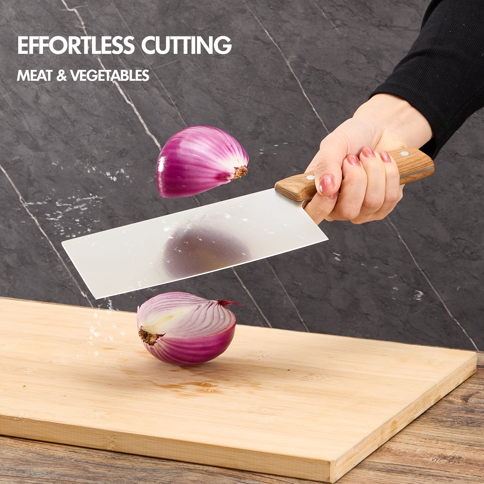 - 【Ergonomic Handle】Ergonomically designed wood handle is anti-slip and anti-freezing and firm to grip avoiding harms to your hand while using the knife.