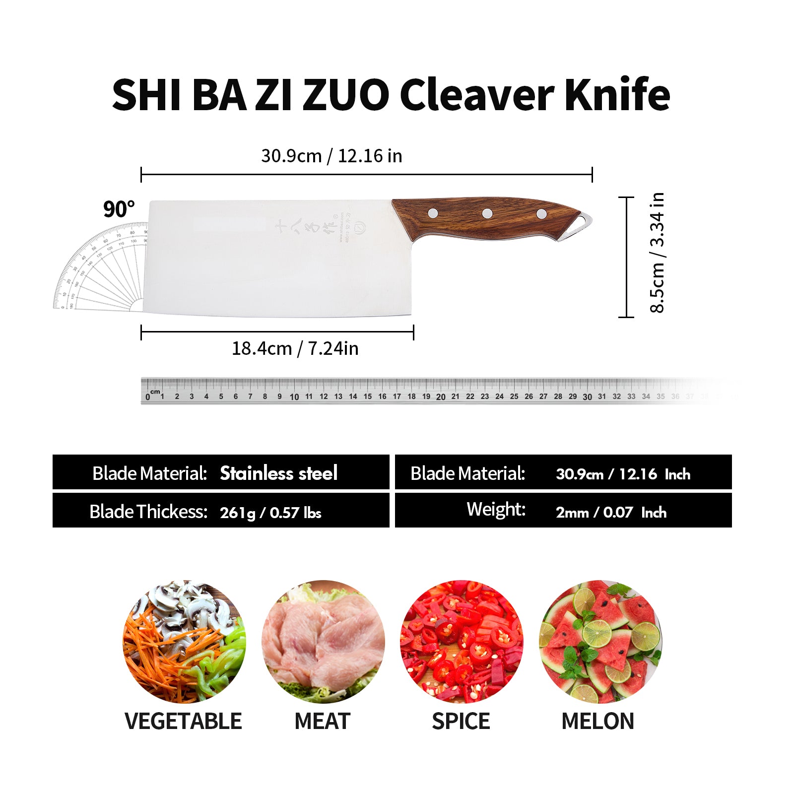 SHI BA ZI ZUO Chinese Knife Professional Kitchen Knife Chef Knife Stainless Steel Meat Cleaver Knife Ultra-Sharp Blade with Anti-Slip Wooden Handle