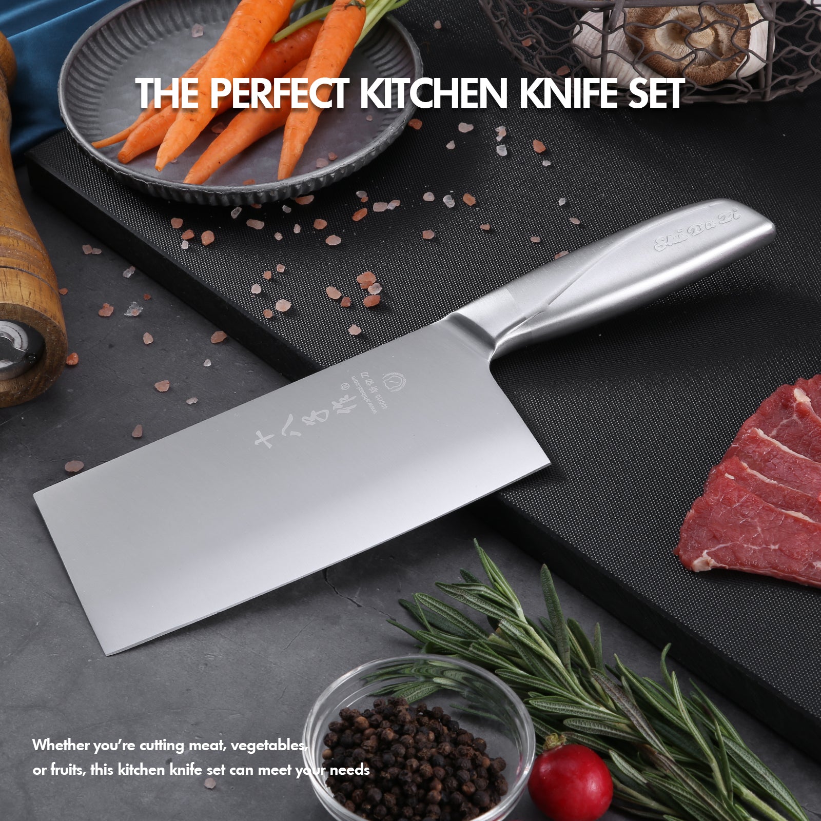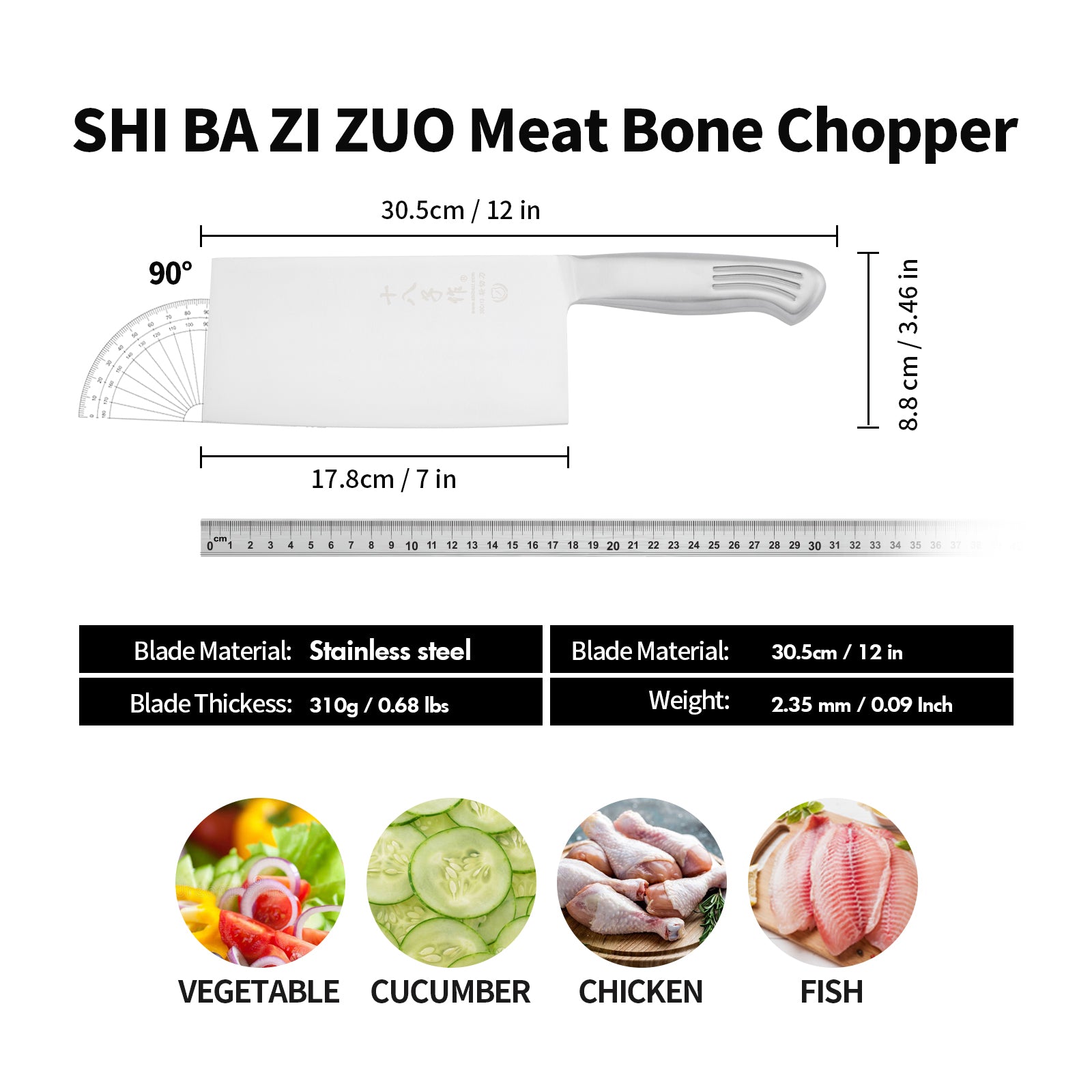 SHI BA ZI ZUO Chopper Knife Professional Chef Knife Meat Cleaver Knife Butcher Knife Slicing Meat Chopping Bones with Stainless Steel Handle