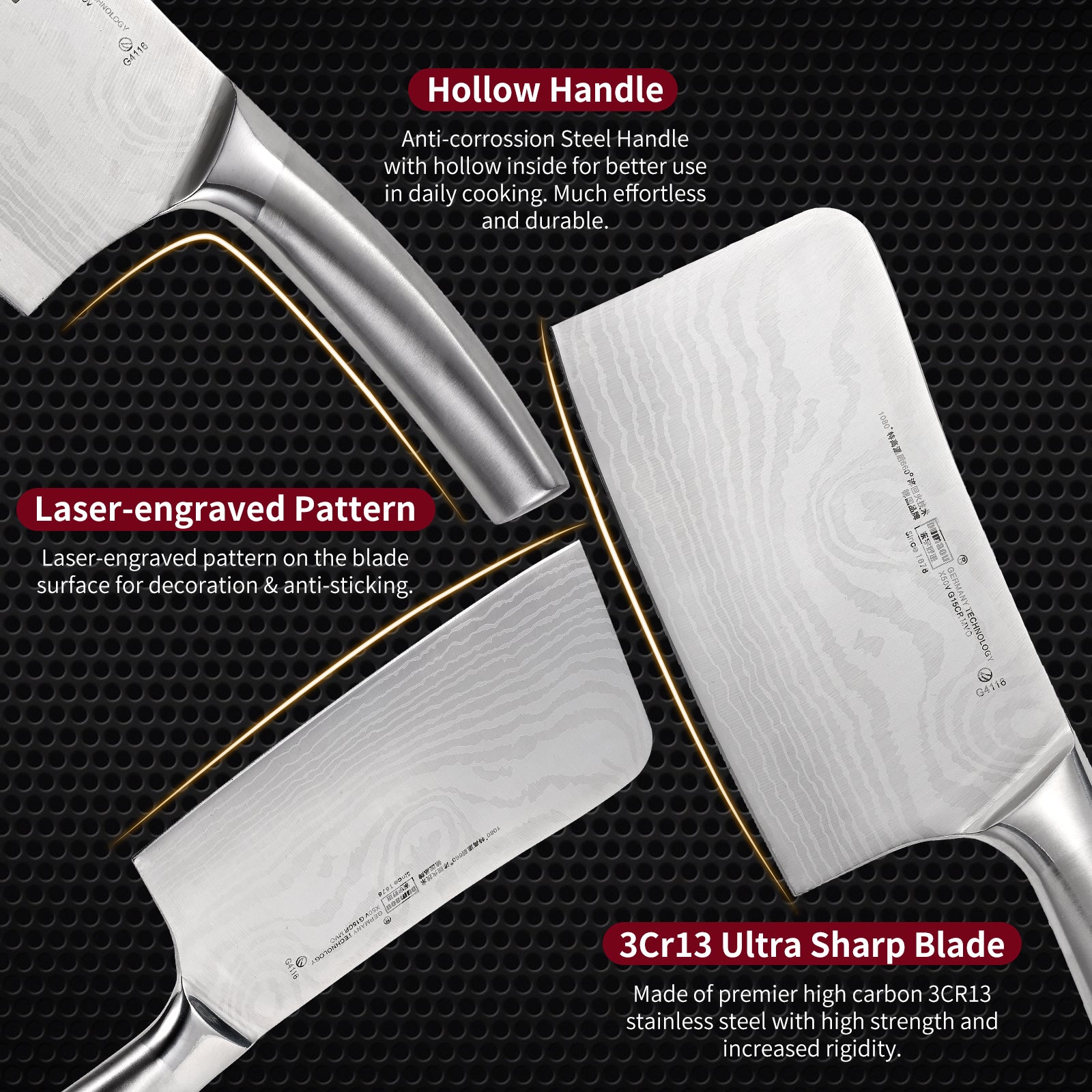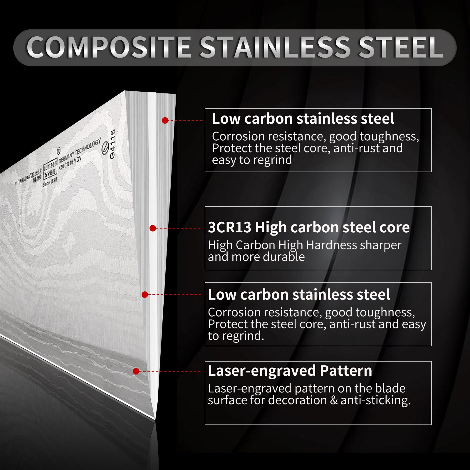 - 【Precise Craftsmanship】Each knife is hand polish producing a sleek blade and smooth grip with super sharp cut. Unique treatment creates long lasting sharpness.Laser-engraved pattern on the blade surface for decoration & anti-sticking.