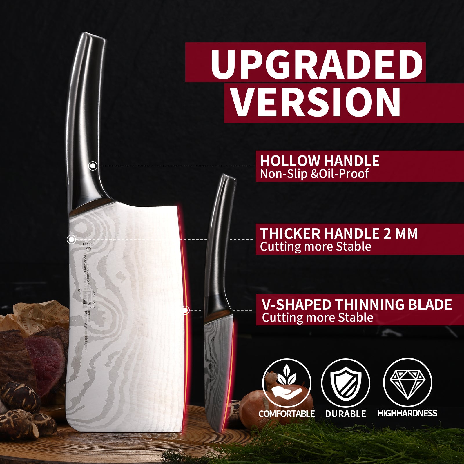 SHI BA ZI ZUO Chopping Knife and Fruit Knife,2 Pieces Kitchen Knife Set Damascus Pattern Chinese Cleaver Paring Knife with Hollow Handle