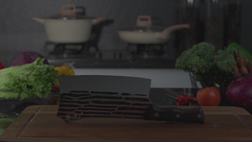 - 【Precise Craftsmanship】These forged chef knives are hand forged by craftsmen with more than 30 years of experience. Our durable knife boasts incredibly sharp blades. The chopping knife can be keeped the blade sharp for a long time, helping you cut food effortlessly. The oxidation blackening and hammering process add an anti-stick effect, enhancing the knife's technical and aesthetic appeal.