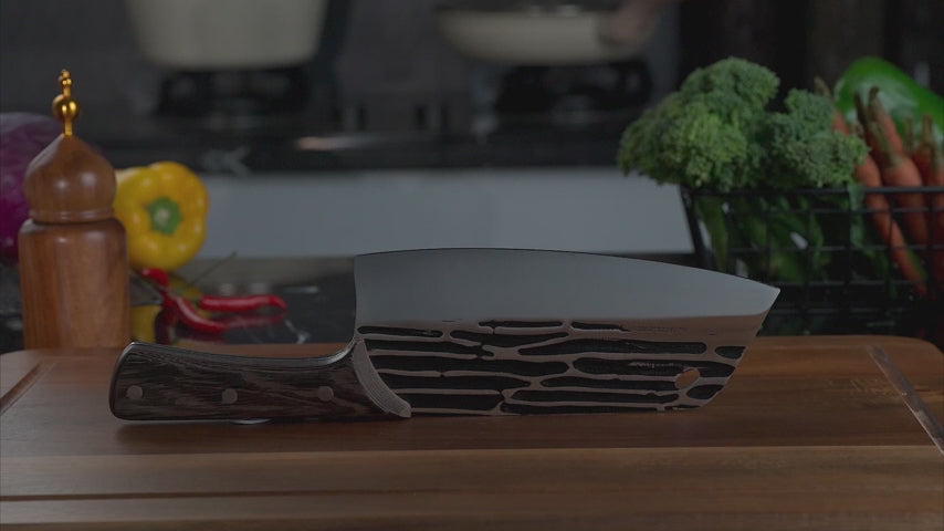 - 【Precise Craftsmanship】These forged chef knives are hand forged by craftsmen with more than 30 years of experience. Our durable knife boasts incredibly sharp blades. The chopping knife can be keeped the blade sharp for a long time, helping you cut food effortlessly. The oxidation blackening and hammering process add an anti-stick effect, enhancing the knife's technical and aesthetic appeal.