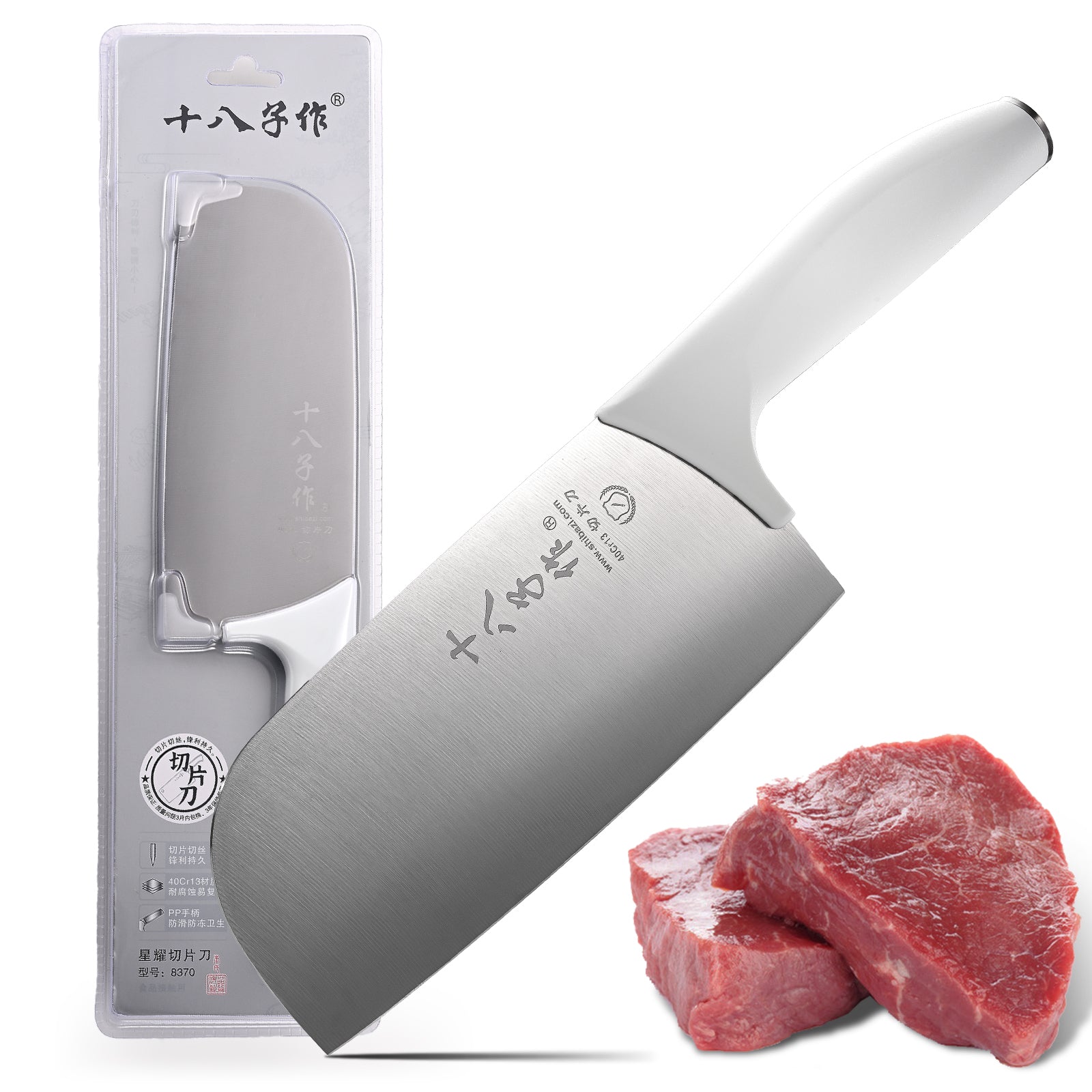 SHI BA ZI ZUO Meat Knife High Carbon Steel Chef Knife for Effortless Cutting and Slicing,Professional Kitchen Knife with Anti-Slip Plastic Handle