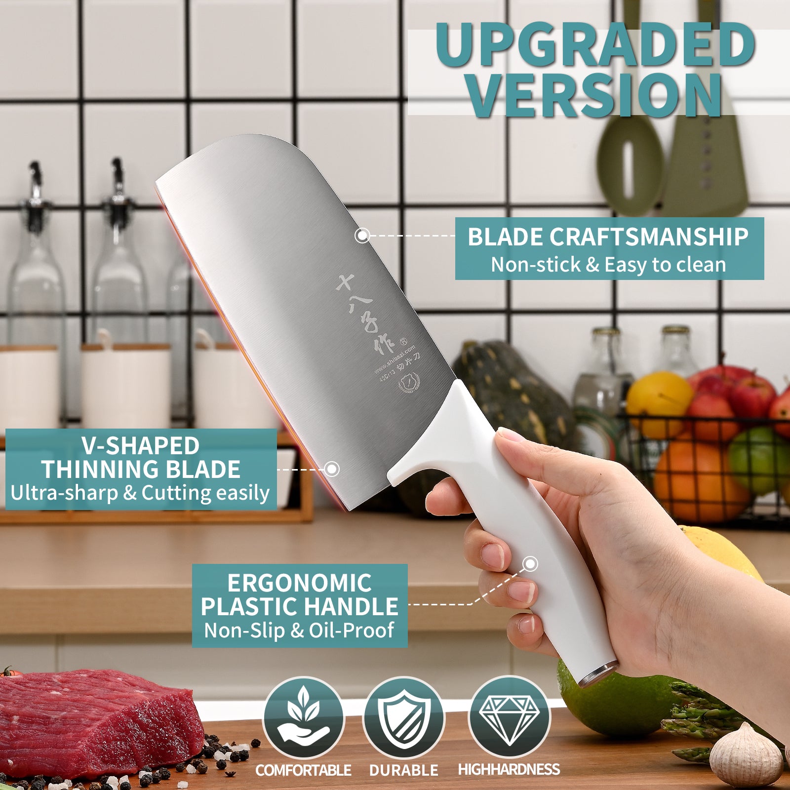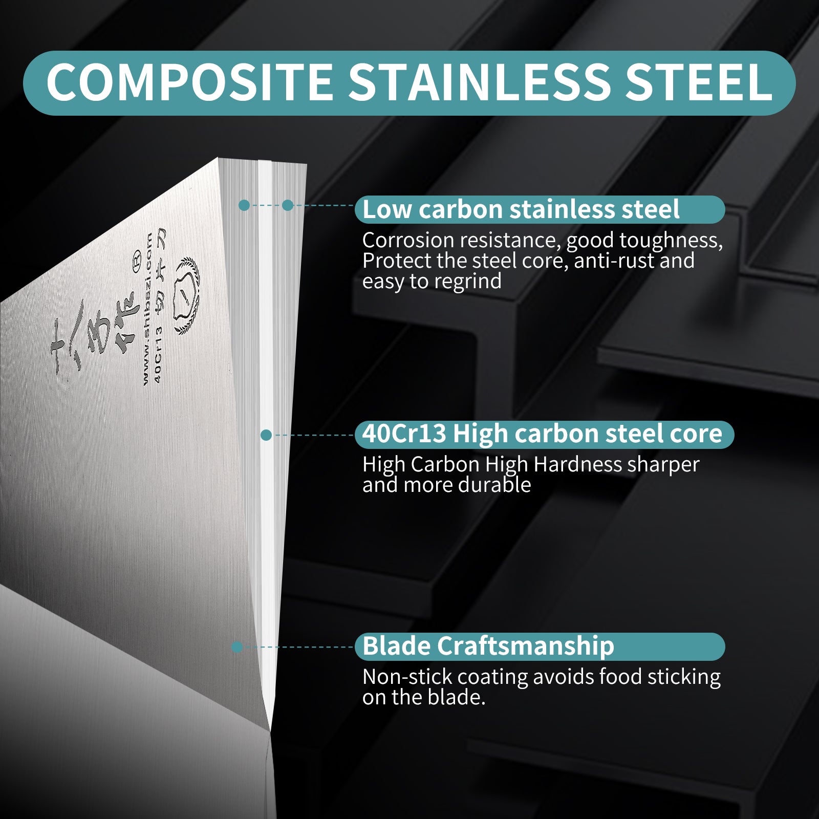 - Blade Craftsmanship - Vacuum heat treatment endows the steel with best mechanical property. Non-stick coating avoids food sticking on the blade. Wire-drawing integrated full tang blade is more stable and safer.