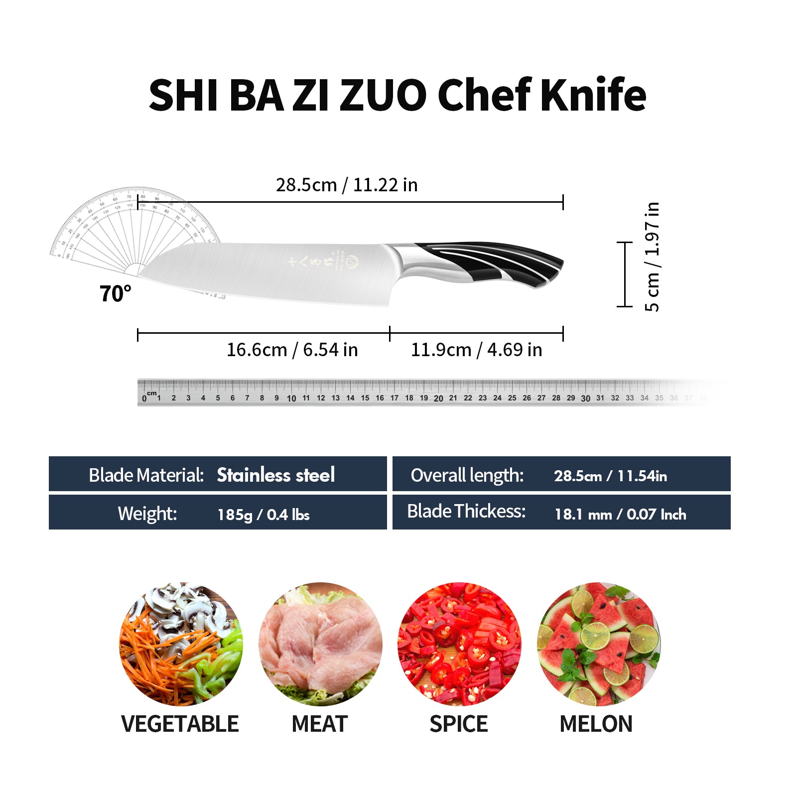 SHI BA ZI ZUO Professional Chef Knife,Stainless Steel Kitchen Knife with Ergonomic Handle for Meat and Vegetable Cutting